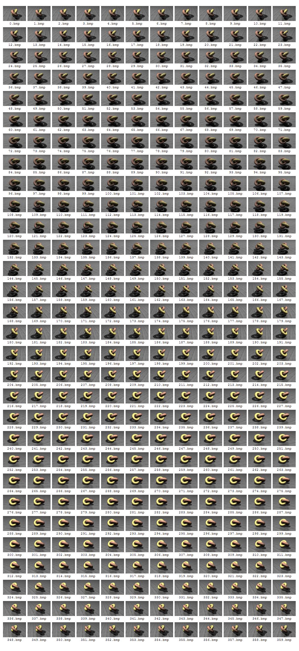This moves the camera around in a 360° circle in 1°steps. Here are the individual frames: