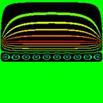 Here's an example of using the program to determine the cutoff potential for a triode grid arrangement. The first photo below shows the physical layout of the electrodes and their separation. Simulations are run at different values of the grid potential - in the four images below, the grid potential is -250V. The second photo is a 2x scale view of the image used to intialise the program. The third and fourth photos are the electric potential and equipotential lines, respectively. The behaviour near the left and right-hand edges of the image is beacuse the edge cells are set to 0V (see above). However, the center part is free from such edge effects and provides a valid simulation of the triode behaviour.