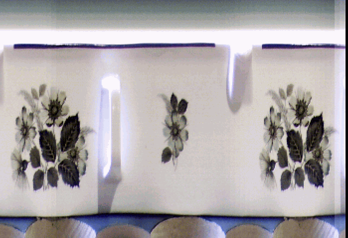 It worked pretty well! Here's four different objects. The images are pretty weird, but clearly recognisable. The funny scalloped shape at the bottom was a square piece of wood which sat on the turntable - it's distorted due to the slit scanning.