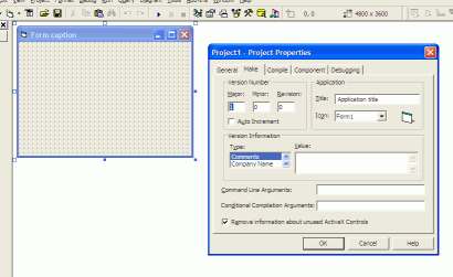 A VB6 program actually seems to have two window handles - I'm note sure exactly why this is. As a demonstration, I created a blank project with one form. The form's title is "Form caption". Under Project Properties -> Make, there is a field for the application title. I set this to "Application title" and compiled the project. Here's a screenshot of the IDE settings: