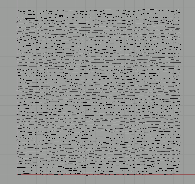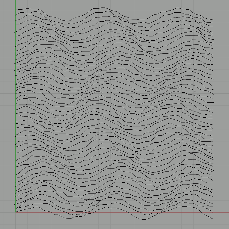For each Y position from 0 to 50, it creates an array of 50 points in the horizontal direction with random variations in both their X " Y coordinates and then draws a control point curve through them.