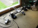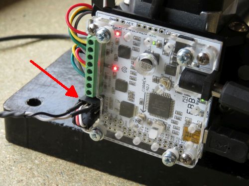 The EBB has lots of external I/O pins which can be used for both digital and analog control. On the board sold by Evilmadscientist, headers are provided for the RB0-RB3 outputs. RB0 is already used for the pen slide servo. I'm going to be using RB3 to trigger the laser diode. The actual trigger circuit depends on which laser diode I'm using - this is described in more detail further down the page. Note that the RB3 high level is 3.3V, so if you're using something like a MOSFET to switch the laser diode, make sure the gate threshold voltage is low enough.