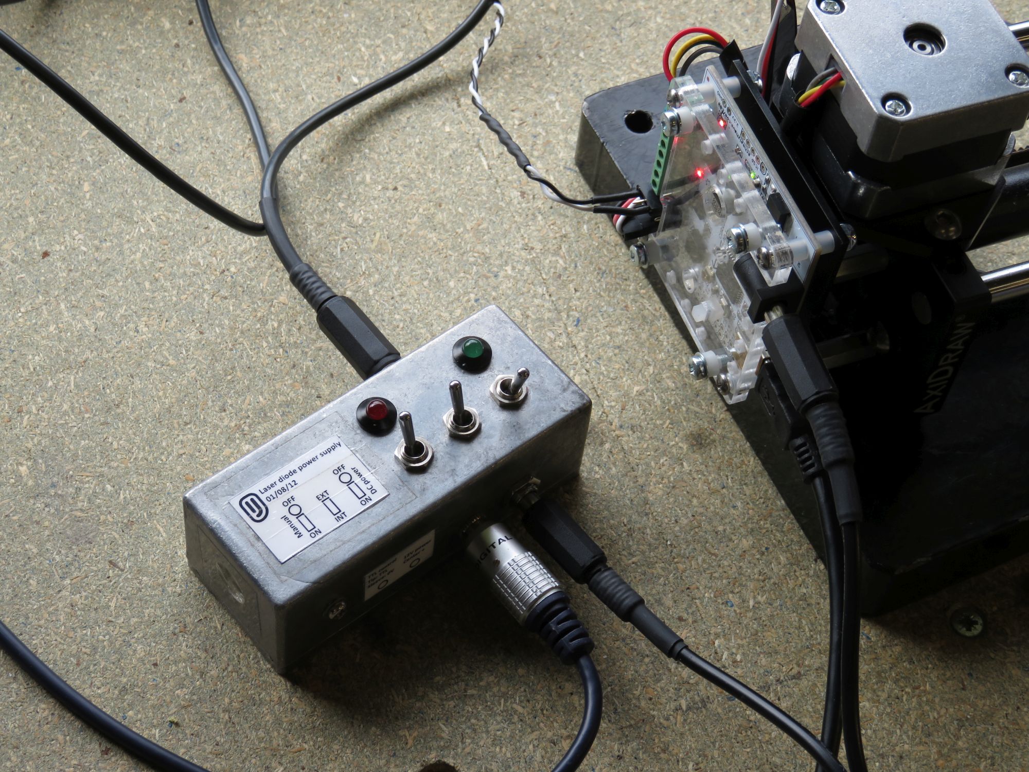 The hardware/code modifications described are equally applicable to other EiBotBoard-based machines, such as the Eggbot or Watercolorbot, and can obviously be used to control things other than laser diodes.