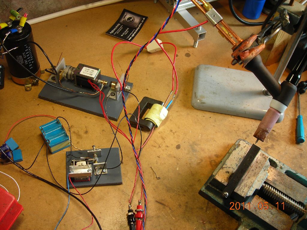 Although the end result is perhaps not too useful as an actual pulse arc welder (the energy is too low, and it would need additional circuitry to provide controlable and repeatable welds), I hope it's of interest from the point of view of the high-voltage trigger circuit.