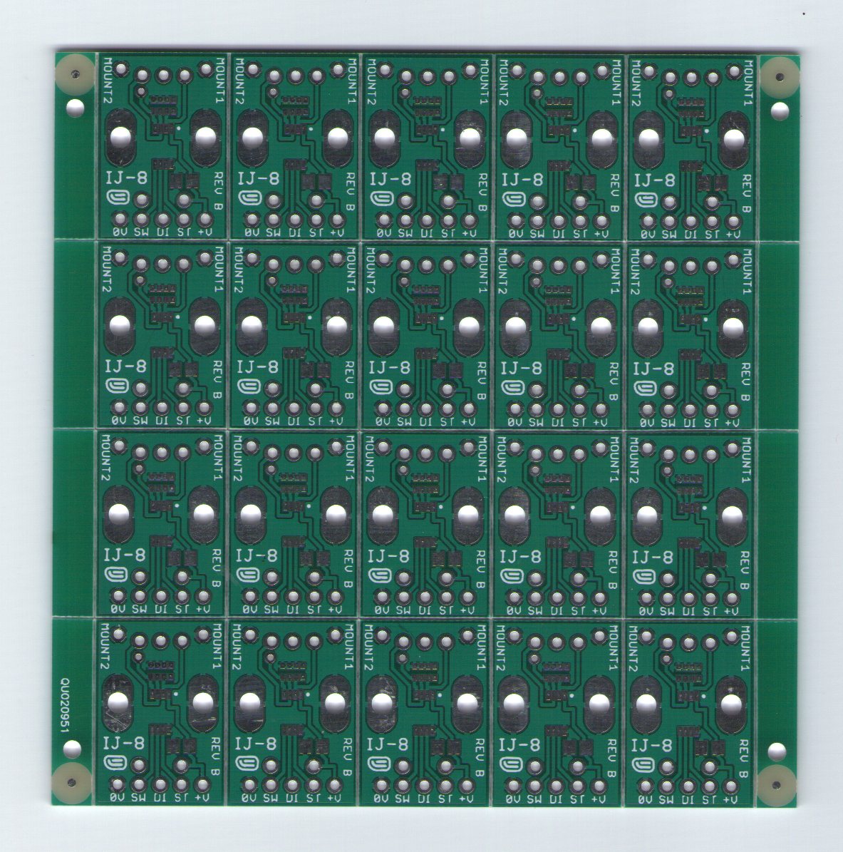There are actually 20 individual boards on this - after assembly, they are snapped apart along pre-defined score lines.