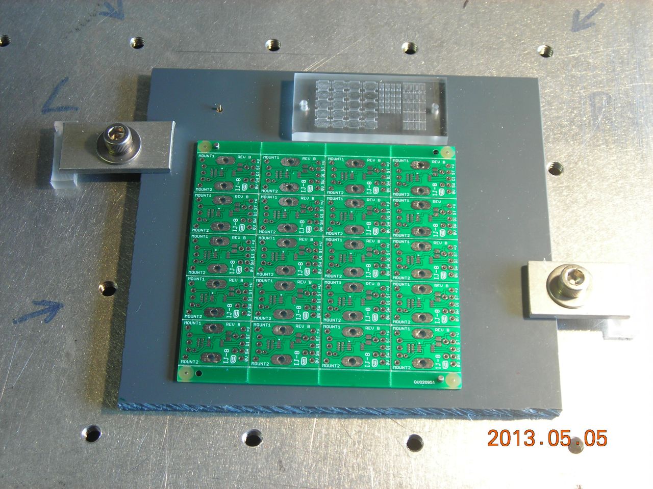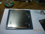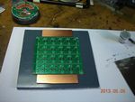 Here's one of the boards and the solder paste stencil: