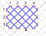 For a 4 x 3 region, there is only one path the laser beam can follow. This is not the case for other sizes of regions. For example, a 6 x 4 region has two possible paths the laser beam can follow. These are shown below.
