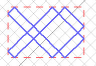 Imagine that the short red bars are mirrors. Imagine we are standing at the mirror denoted by the black dot, and we shine a laser beam in a north-west direction. The beam will bounce round the mirrors until it returns to where we are standing. The blue path denotes the laser beam.