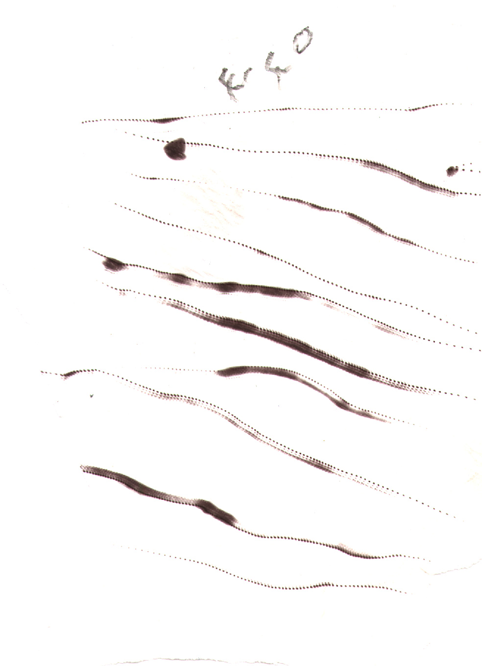 1) Click here. These are the trails I mentioned. Notice the "triplets" (or even quadruplets) of dots in some of the trails.