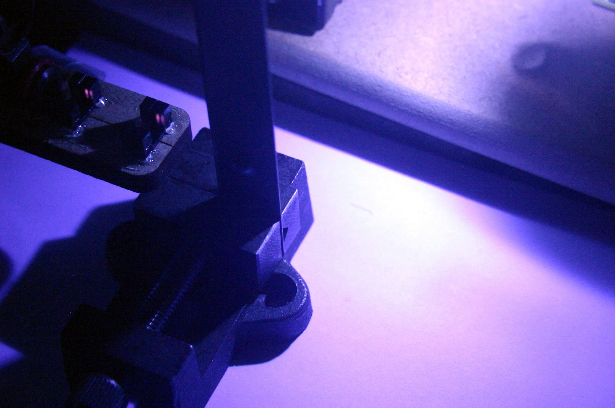 You can also just about see a dull orange glow from the emitters of the optical sensors - they're infrared, so the camera is sensitve to them.