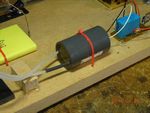 The trigger output is produced on RC0. This goes to a 16TTS08 thyristor via a 100Ω current-limiting resistor. A 1µF polypropylene capacitor is charged to 300V and is dumped through the primary of a trigger transformer when the thyristor is fired. The transformer itself is a custom job - it has 15 turns on the primary and 850 turns on the secondary. The core is half of a ferrite rod antenna. The secondary is vacuum-potted in epoxy. With a 300V input, it's capable of producing 20-30kV pulses, easily sufficient to trigger the gap.