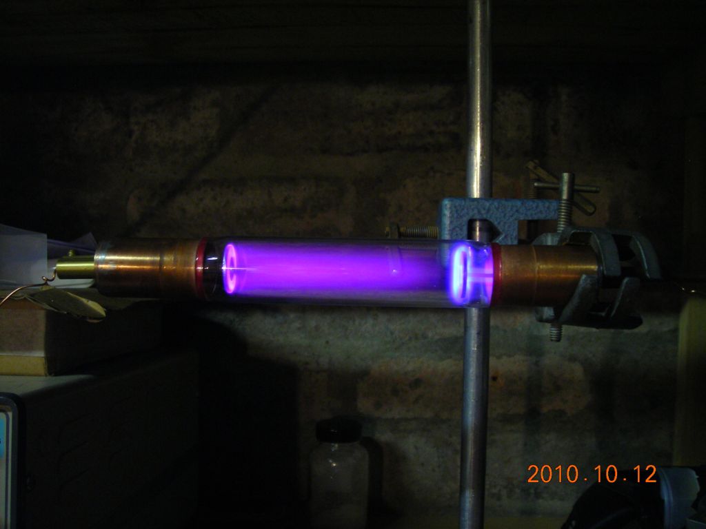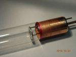 It works really well and displays a nice discharge when connected up to my 40kV flyback supply. No significant heating is apparent and there doesn't seem to be any problems about a discharge from the copper tubing itself.