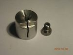 I made two split plugs from the insulating soldering block material and arranged them on an M6 threaded rod in the lathe so that they can be expanded using 45° cone washers mounted on the threaded rod. Springs are used to keep up the force even when the tubing expands. The end result is that both tubes are held concentrtically and tightly and can easily be manipulated to make the seal. The far end of the threaded rod is countersunk so it can be supported with the revolving center. Important note - do not tighten the revolving center, since the threaded rod expands considerably from heat during the sealing process and can jam the revolving center!