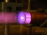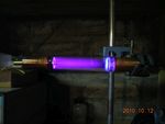 Just for fun, I made a little discharge tube using two Houskeeper seals to join copper electrodes to the ends of a glass tube. For these joins, I used a bit more pre-oxidation. The colour was a dark purple/black instead. This resulted in the final seal looking purple/red and also bubble-free, so this seems to be a good colour to settle for.
