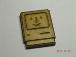 04/12/11: Happy Mac. I happened to come across the happy mac symbol (on Wikipedia - http://en.wikipedia.org/wiki/File:Happy_Mac_original.png) and thought it would laser-cut nicely. Here it is in 5mm black acrylic (sandblasted), 3mm hardboard, and a piece of shortbread! Unfortunately, the shortbread tasted pretty foul afterwards from the burnt sugar.