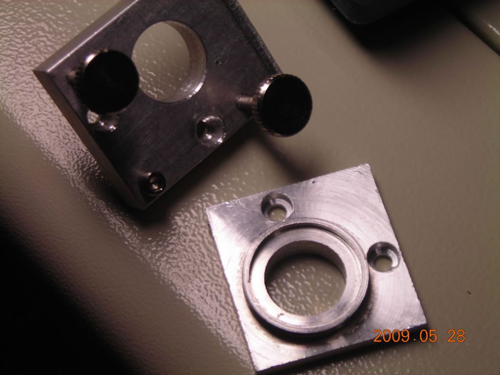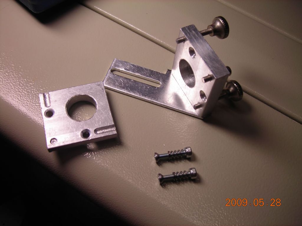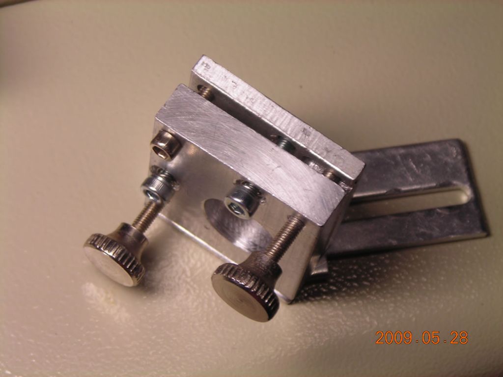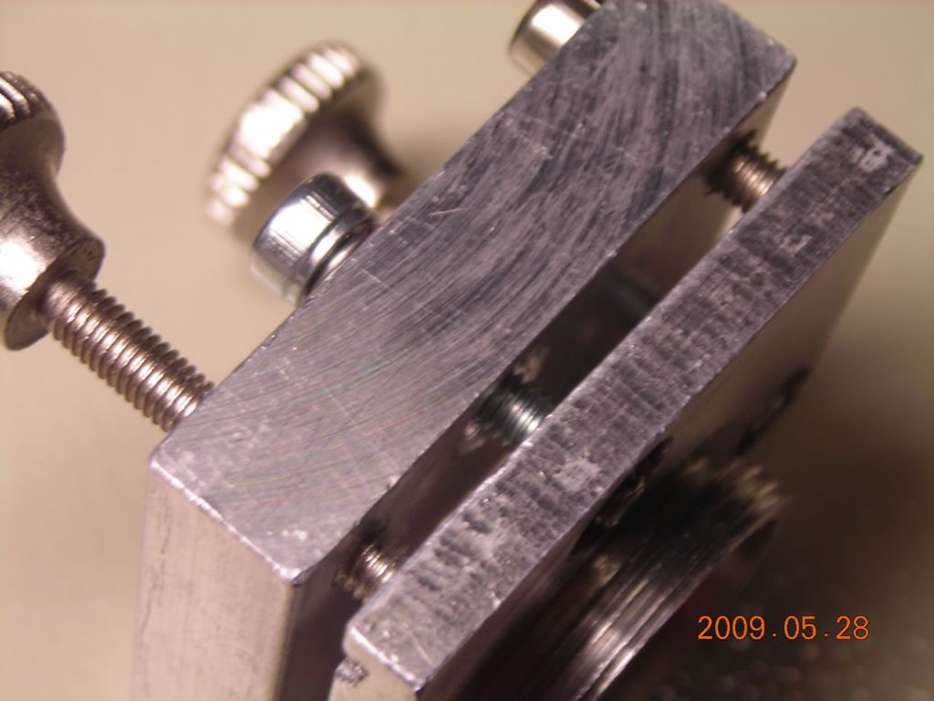 Here it is assembled. Another very important mod is to round off the tips of the adjustment screws - as they are, they have a sharp square end which just digs into the aluminium of the mount!