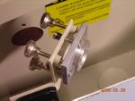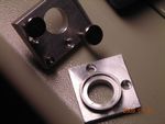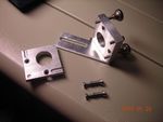 And now mounted back in position on the laser. I also replaced the two screws on the horizontal adjustment plate with socket-head screws and also made a larger washer (the rectangular plate). The two screws on their own simply pressed their way into the aluminium and made sliding imposssible. Now it's smooth.